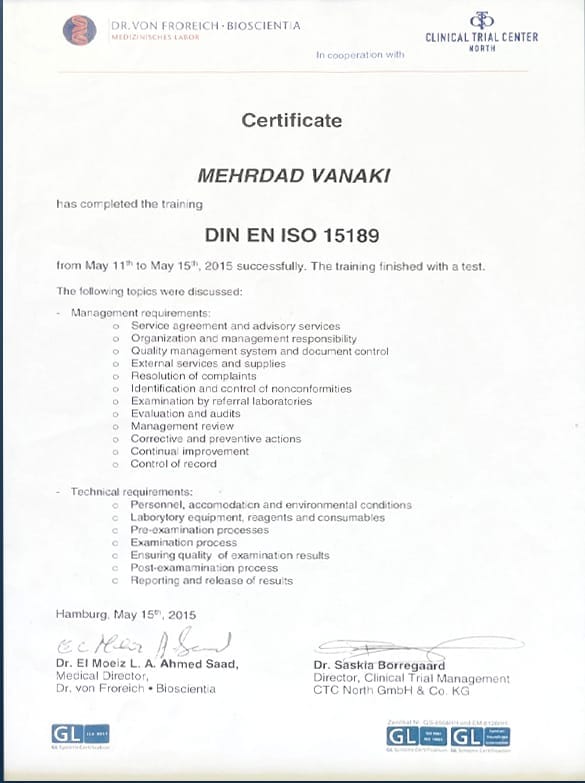 گواهینامه ایزو 15819 آزمایشگاه فروردین